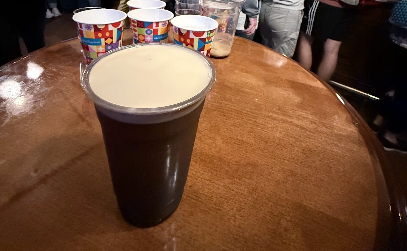 Our stop in The American Adventure was, I’ll admit, a bit of a cop-out. It’s important to pace yourself when drinking around the world, and that includes staying caffeinated when necessary. Thus, America’s bounty provided in the form of Walt Disney World Resort Blend Coffee ($3.69) from Joffrey’s Coffee & Tea Company. The Joffrey’s brand is odd in that it appears to exist primarily to serve the needs of Walt Disney World Resort and Disney fans, but it’s not owned or operated by Disney. Regardless, Joffrey’s is a Florida-based coffee roaster, so it serves as a passable American Adventure drink. While I’m sure Joffrey’s is capable of producing decent coffee, the blend they serve as drip coffee in the park is not very good, lacking much flavor beyond a mild bitterness. At least some coffee is better than no coffee.