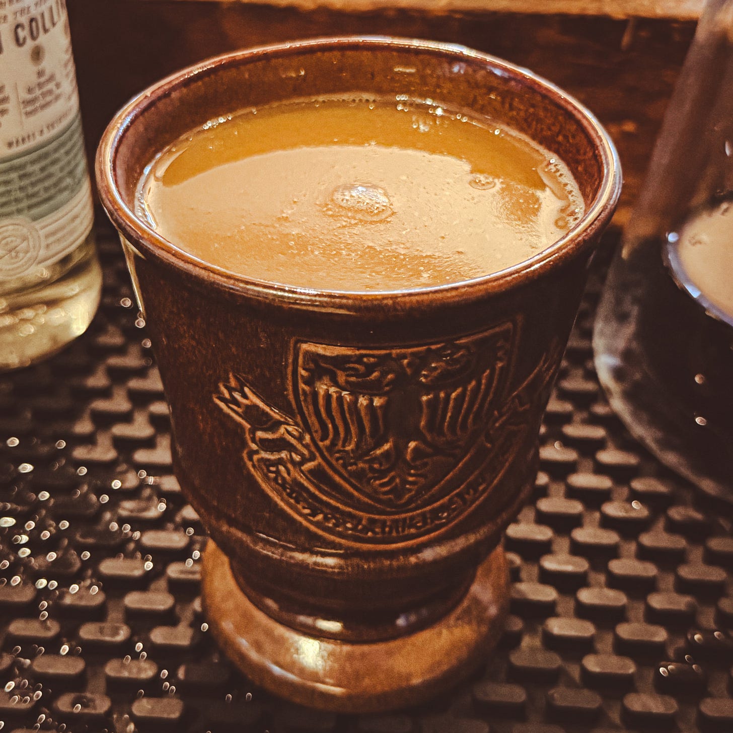 While the Night Monkey made creative use of coffee flavor, the Mustang Coffee is just a straight up cup of enhanced coffee. It’s quite tasty, and a perfect pick-me-up in the middle of attempting to make every drink on the Nomad Lounge menu. The official specs call for Crown Royal, but I’d recommend reaching for any lightly aged blended whiskey of your choice.
