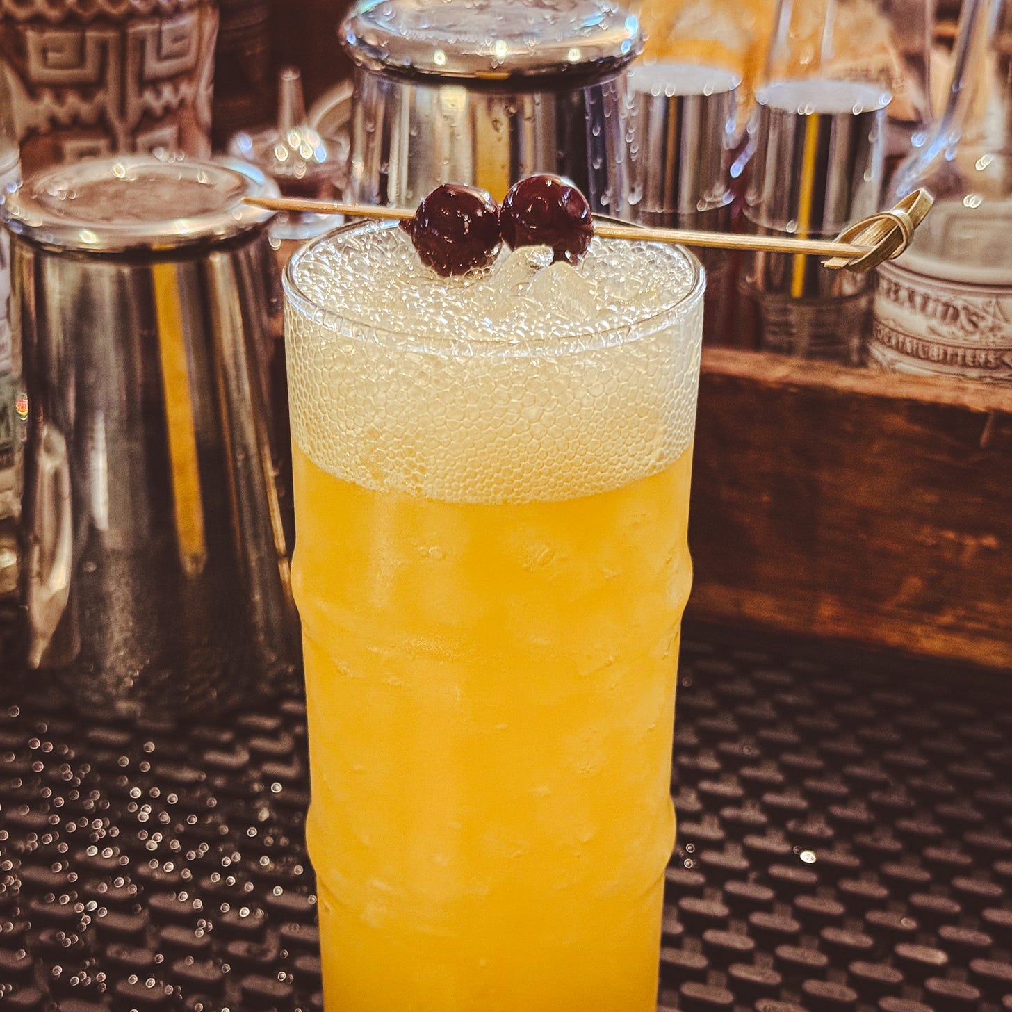 Phew, only three drinks to go! The Hightower Rocks is unfortunately pretty forgettable, though. Seeing “Sweet-and-Sour” in the ingredients list was something of a red flag too; I substituted it for fresh lemon juice and simple syrup.